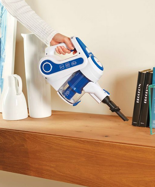 La batteria agli Ioni di Litio da 22.2 Volt e il sistema di aspirazione ciclonico garantiscono elevate prestazioni di pulizia e autonomia fino a 40 minuti.
