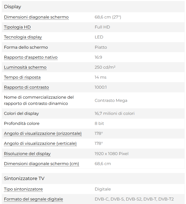 LO SCHERMO IPS FULL HD (1920 X 1080) DA 27" TI CONSENTE DI GODERE DI UN'ECCELLENTE QUALITÀ DELL'IMMAGINE OFFRENDO PRECISIONE CROMATICA, CONTRASTO VISIVO E NITIDEZZA.
