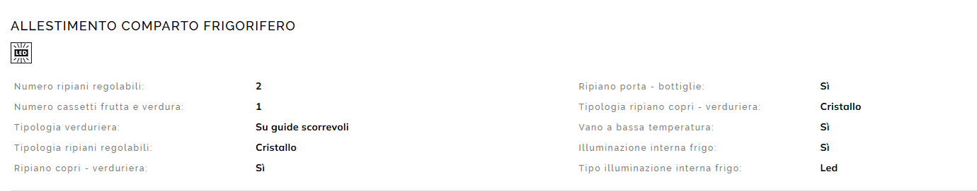 ILLUMINAZIONE INTERNA PER UNA PERFETTA VISIBILITÀ DEI RIPIANI NEL VANO FRIGORIFERO
