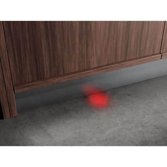QUESTA LAVASTOVIGLIE INTEGRATA TOTALE È DOTATA DI UN SISTEMA INNOVATIVO CHE TI CONSENTE DI SAPERE SUBITO SE IL CICLO DI PULIZIA È TERMINATO. LA TECNOLOGIA BEAM-ON-FLOOR PROIETTA UNA LUCE ROSSA SUL PAVIMENTO MENTRE IL CICLO È ANCORA IN CORSO; QUANDO LE STOVIGLIE SONO PULITE, LA LUCE DIVENTA VERDE.