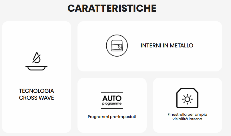 La cavità in acciaio inox evita sgradevoli odori di plastica, è resistente e sicura. Una griglia metallica protegge la luce, le resistenze e la ventola e crea una perfetta distribuzione del calore. E' anche facile da pulire.