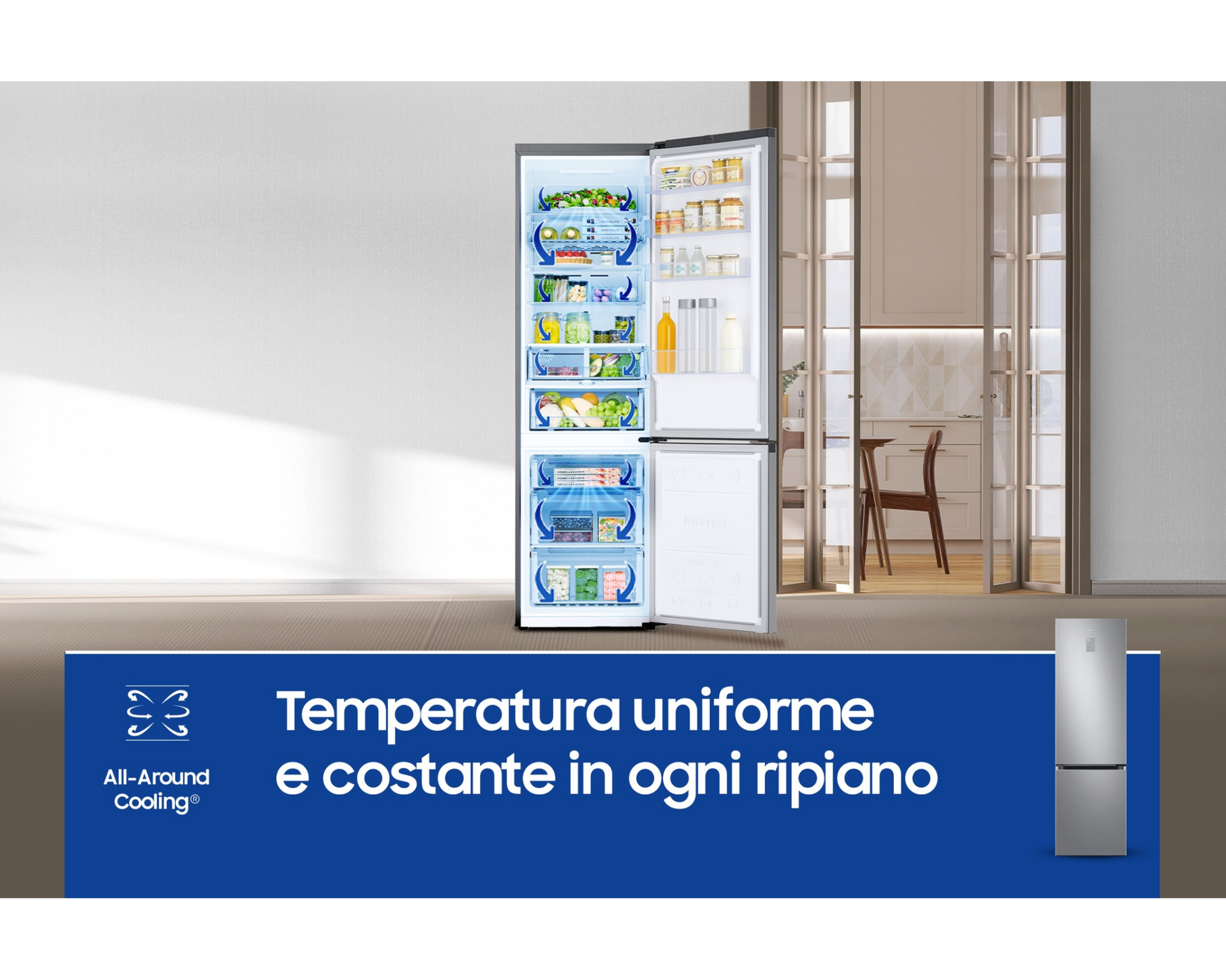 Assicurati che i tuoi alimenti siano adeguatamente refrigerati – in ogni zona del frigorifero. Il sistema All-Around Cooling garantisce un freddo uniforme in ogni zona del frigorifero. Controlla costantemente la temperatura e fa circolare l’aria fredda attraverso bocchette collocate in posizioni strategiche. In questo modo ogni ripiano viene raffreddato in modo ottimale e gli alimenti rimangono più freschi.