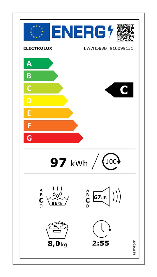 ELECTROLUX 8KG CLASSE ENERGETICA C INVERTER MOD. EW7H583B