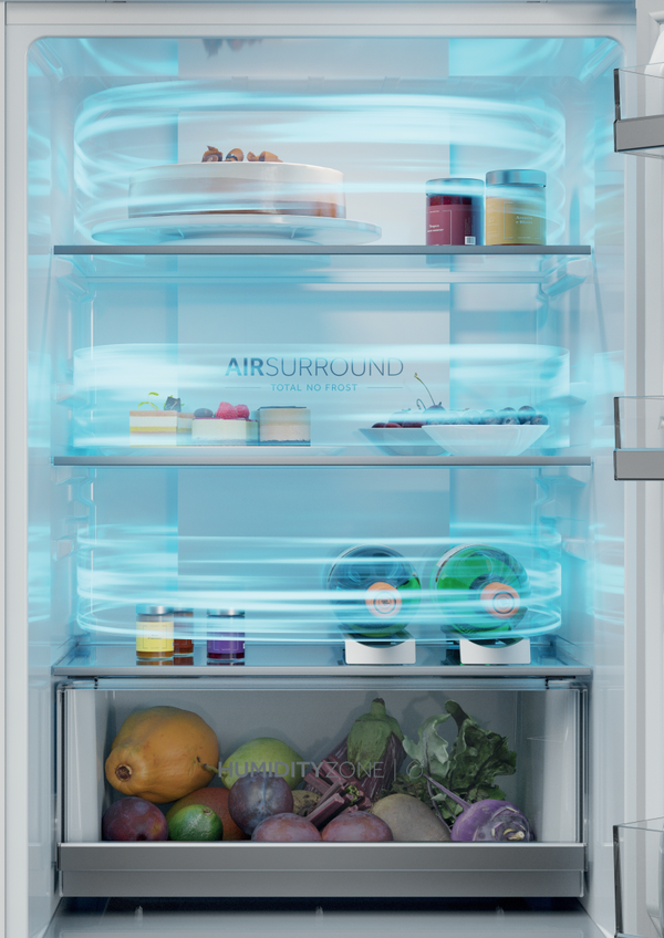 HAIER AIR SURROUND FRESHER TECH, L'ARIA CIRCOLA INTORNO AL FRIGORIFERO IN MODO PIÙ DELICATO. GRAZIE ALLE SPECIALI BOCCHETTE LATERALI SULLA COLONNA, QUESTO SISTEMA DISTRIBUISCE IN MODO OMOGENEO L'ARIA FREDDA ABBRACCIANDO IL CIBO IN TUTTA LA CAVITÀ DEL FRIGORIFERO ED EVITANDO COSÌ IL FLUSSO DIRETTO SUL CIBO, SENZA CAUSARE DEPERIMENTO ED ESSICCAMENTO DEGLI ALIMENTI.