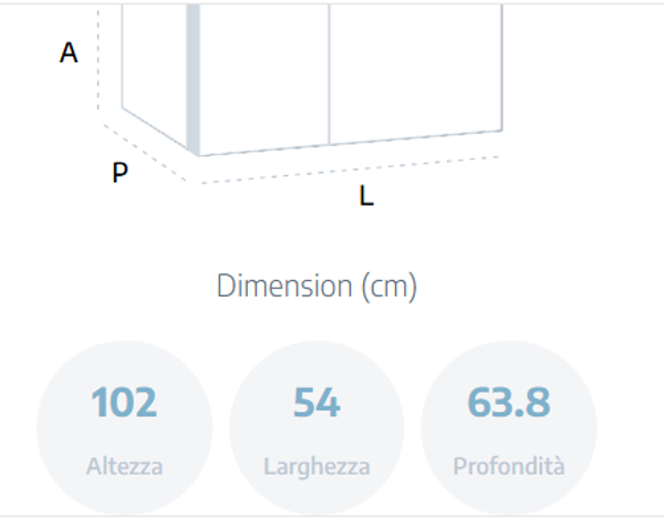 ALTEZZA: 102 CM / LARGHEZZA: 54 CM / PROFONDITÀ: 63.8 CM