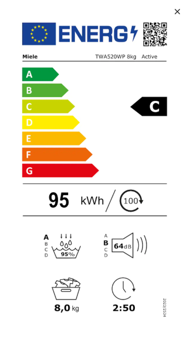 Massima efficienza di condensazione: Tutte le asciugatrici Miele raggiungono valori di tenuta ottimali e la classe di efficienza di condensazione più elevata, la A. Ciò significa che solo un minimo quantitativo di aria calda e umida può fuoriuscire. Questa qualità di tenuta garantisce la protezione della stanza e dei mobili, evitando la formazione di muffa e condensa sulle pareti.